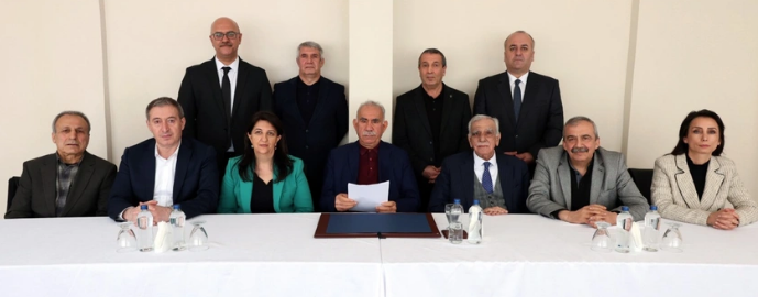 Abdullah Öcalan dün tarihi bir çağrı yaparak PKK'nın silah bırakmasını ve kendini feshetmesini istedi. Çağrı Türkiye'de ve dünyada yankı uyandırırken basın toplantısı sırasında İmralı heyeti bir de fotoğraf paylaştı. O fotoğrafta İmralı heyetinde yer alan 7 kişinin yanında 3 kişi daha vardı.