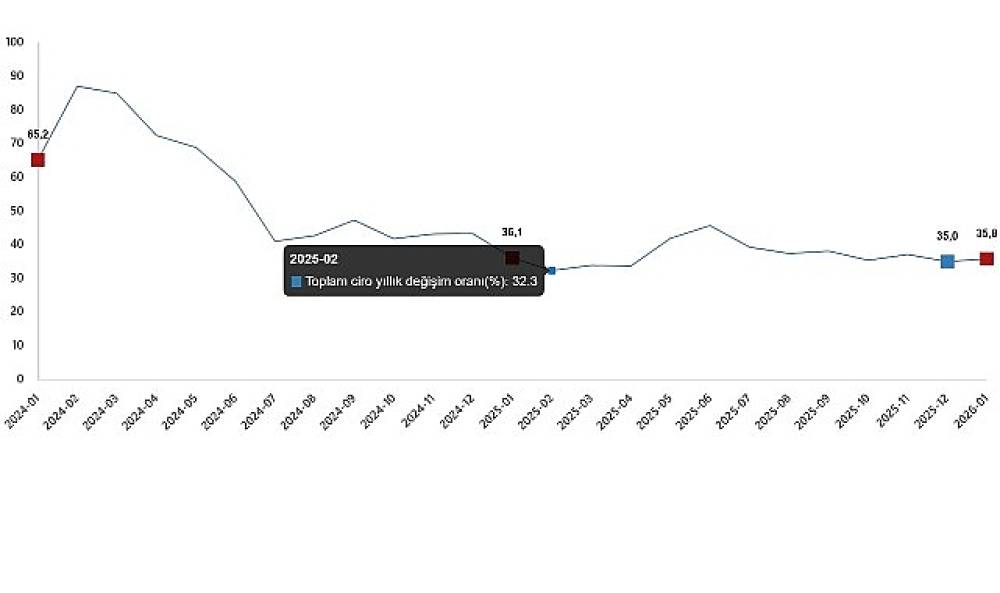 Toplam ciro yıllık değişim oranı(%), Ocak 2026